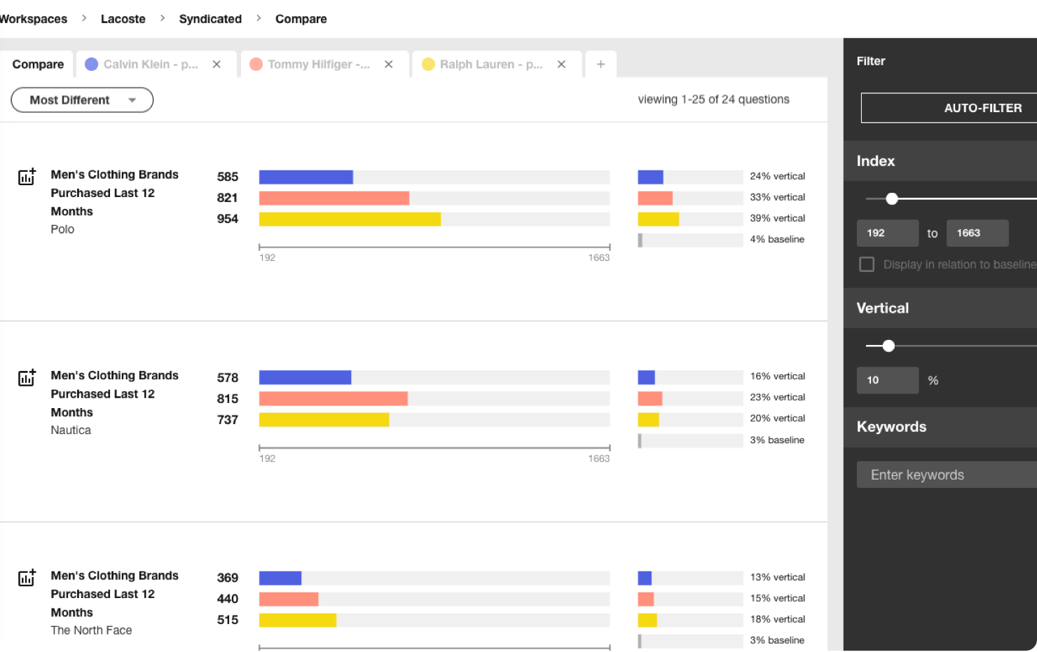 Import your syndicated research targets and Arcadia will automatically compare them to surface key similarities, differences and outliers within seconds.